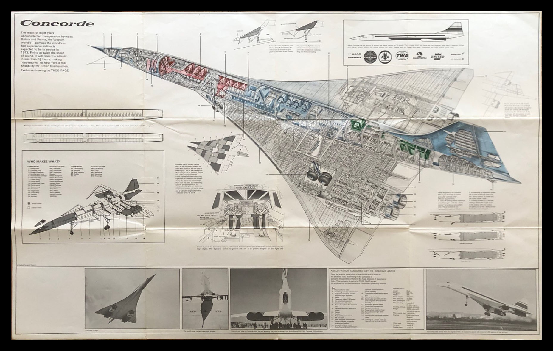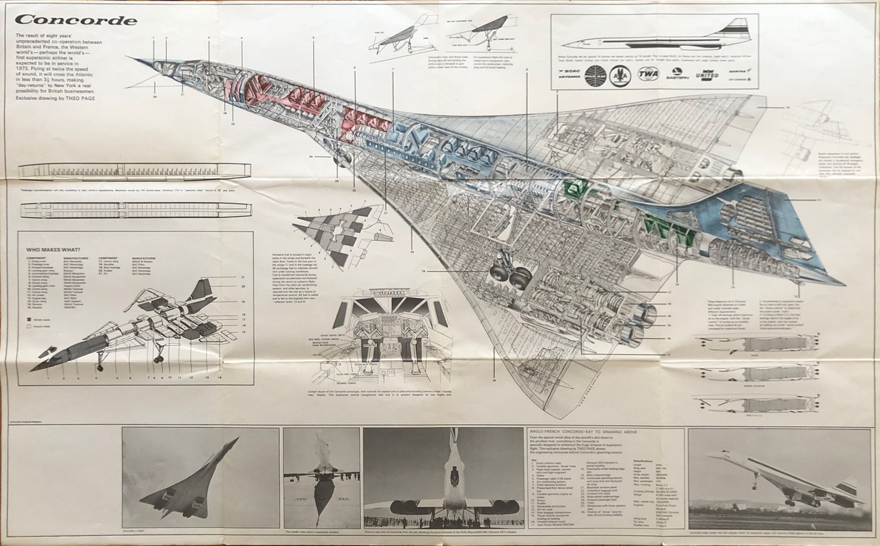 It’s an interesting poster, produced and distributed to schools and showing details of the provisional number of orders, plus the livery of some of the various airlines with orders to add Concorde to their fleet. This print pre-dated the changing economic circumstances that caused these orders to be cancelled. Later versions of this poster have this feature removed and replaced by a sponsors logo.