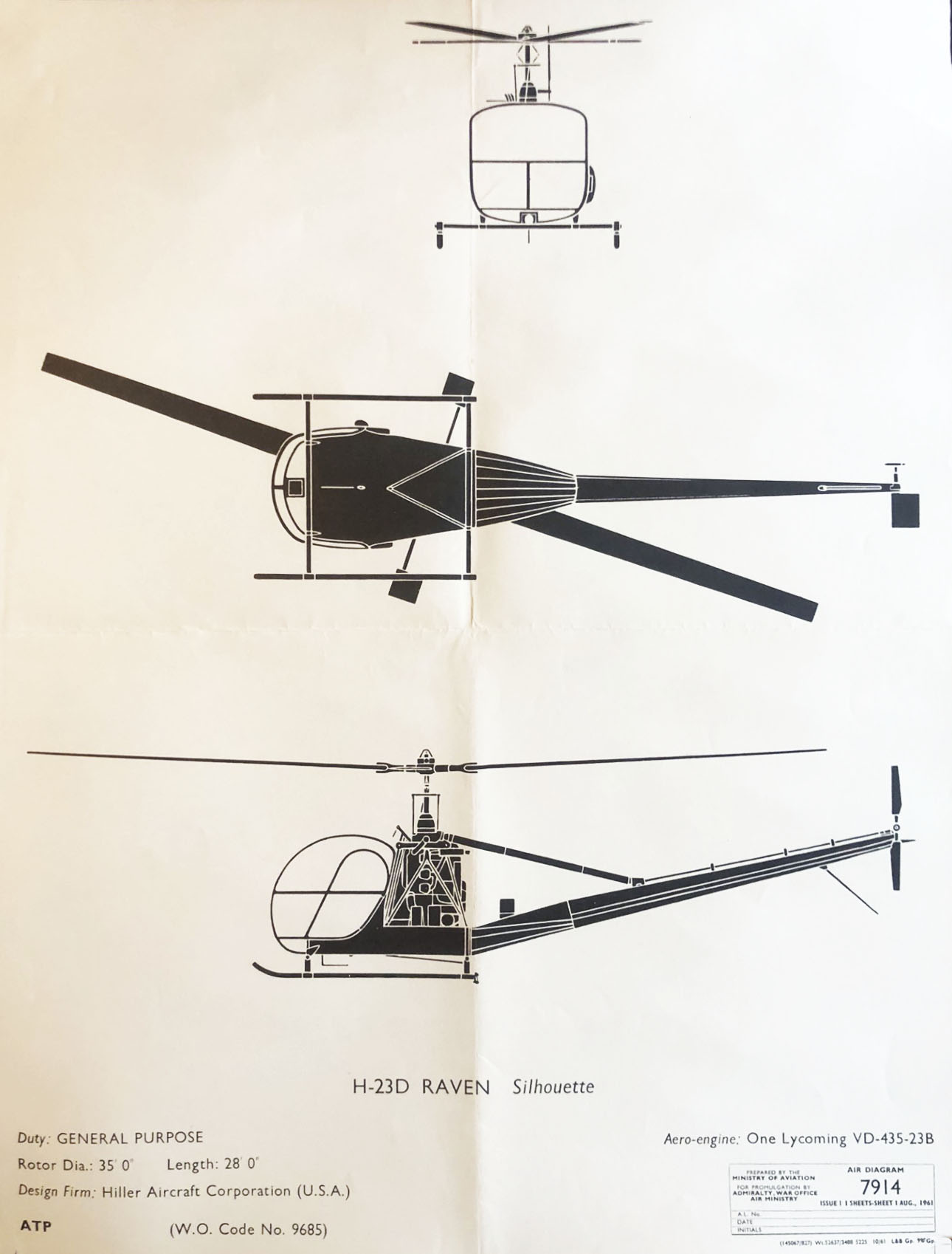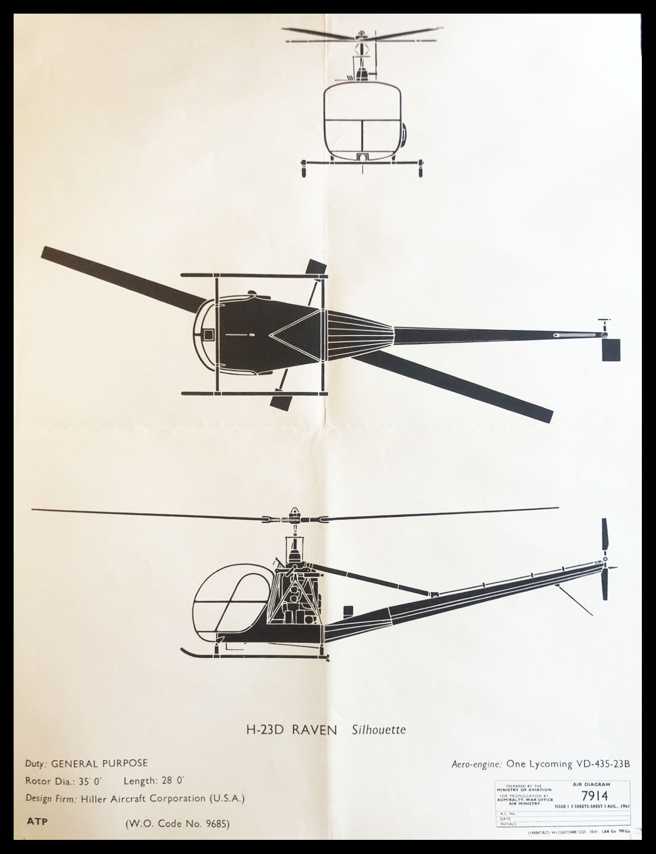 A large format aircraft recognition poster showing the H-23D Raven helicopter which saw combat service in both Korean and Vietnam wars.
